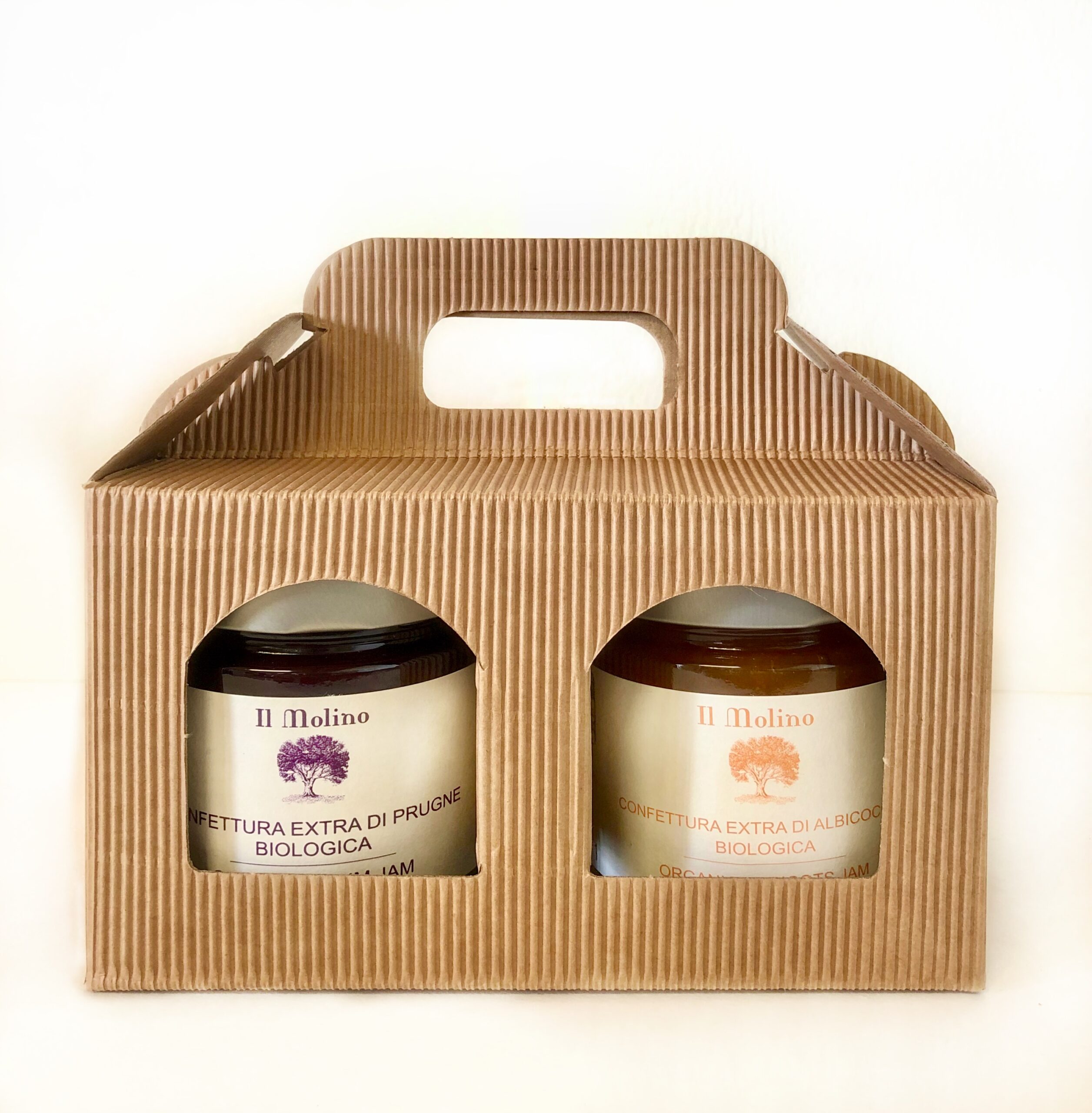 Questa box contiene 2 confetture bio da 250gr realizzate nel nostro laboratorio aziendale utilizzando solo la frutta del nostro frutteto, raccolta manualmente e trasformata freschissima, secondo la semplice ricetta tramandata nella nostra casa da generazioni. Solo sapore semplice e buonissimo della frutta matura. Troverai una confettura bio di albicocche e una di visciole.